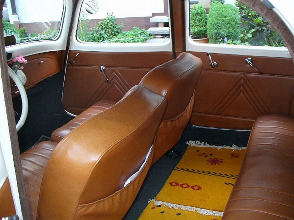 als Extra gab es seinerzeit auch rotes Kunstleder, welches wie ein zusätzlicher Schonbezug über den standardmäßigen, graugestreiften Wollstoff gezogen wurde, und zwar sowohl auf den Sitzen als auch auf den Türverkleidungen. Siehe anliegendes Foto.