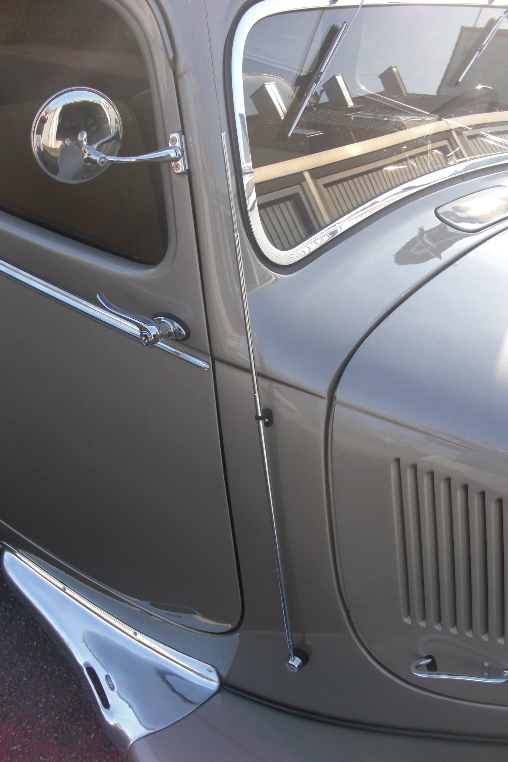 Traditionell hatten Fahrzeuge in Frankreich überwiegend eine Dachantenne. Nachdem beim 11er das Radio vom Zubehörlieferanten kam und nicht ab Werk geliefert wurde, wird es keine Stelle geben, wo ab Werk eine Antenne vorgesehen war. Ich findes, dass dem 11er eine Dachantenne gut steht weil sie seinen Charakter wirkungsvoll unterstreicht.