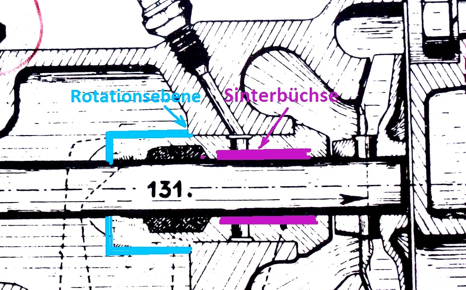 Die "Kupfer"- Lagerbuchse hinten ist aus Sinterwerkstoff und kann sich mit Öl vollsaugen. Irgendein Schlauli hat mal geschrieben, er habe diese Buchse vom Klappöler her durchgebohrt...