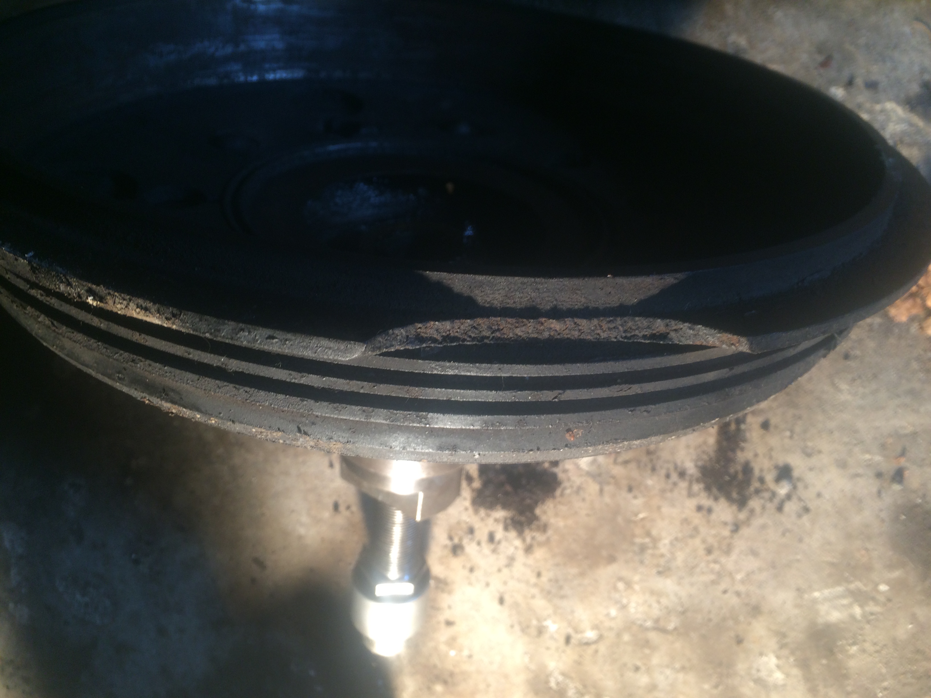 Ausgebrochen ist ein Stück Kühlrippe an einer vorderen Trommel. Nicht relevant für die Funktion, der Grundkreis und drumherum ist alles gut.