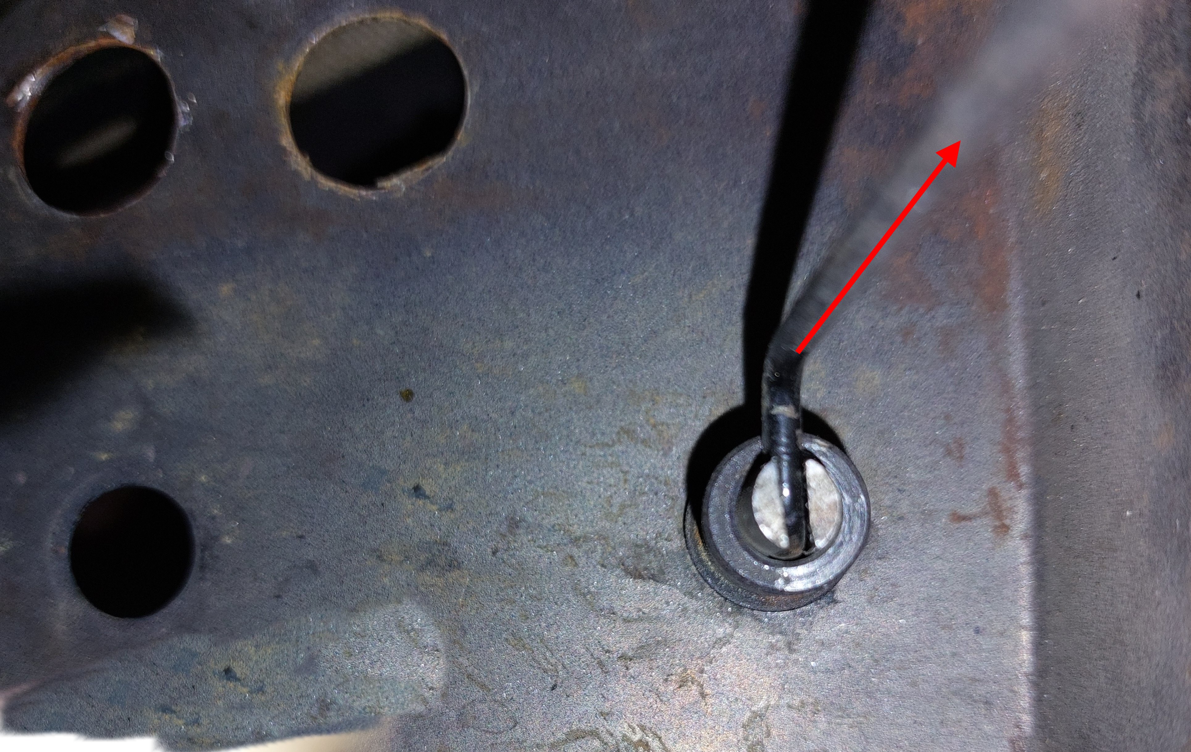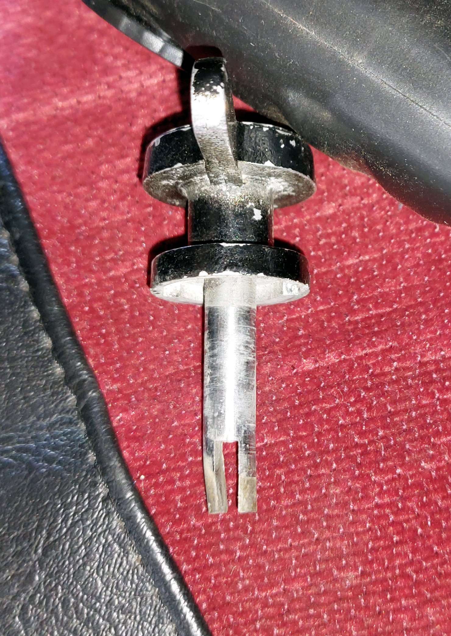 Nur bekomme ich weder den Draht raus, noch kann ich erkennen, wie der Ring am Ende des Teils, am Armaturenbrett von innen, abgemacht wird. Gewinde ist keins erkennbar,  Splitt auch nicht.