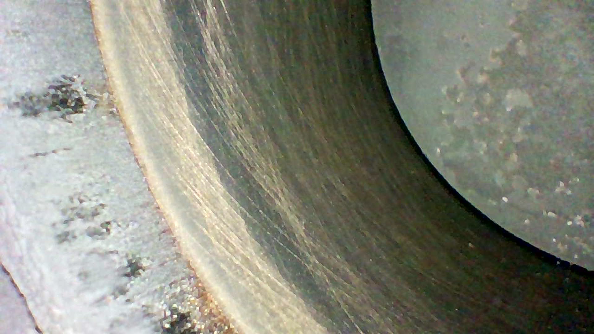 Positiv: Die Gleitlager präsentierten sich ohne wesentlichen Verschleiß. Die Spiele sind im mittleren bis oberen Ende des zulässigen Bereichs, aber das waren Sie von Anbeginn an auch. Einzig am Führungsstift eines Hauptlagers gibt es einen Ausbruch, der offenbar kavitationsbedingt erfolgte. Wasser oder Luft im Öl begünstigt solche Schäden - ich hatte zeitweise viel Wasser im Öl. Mein -neuer, guter- Motorenbauer berichtete, dass er öfter solche Schäden im Bereich von Passstiften von Hauptlagern beobachtet. Also aufpassen, bei Wasser im Öl. Die Risiken sind nicht zu unterschätzen.