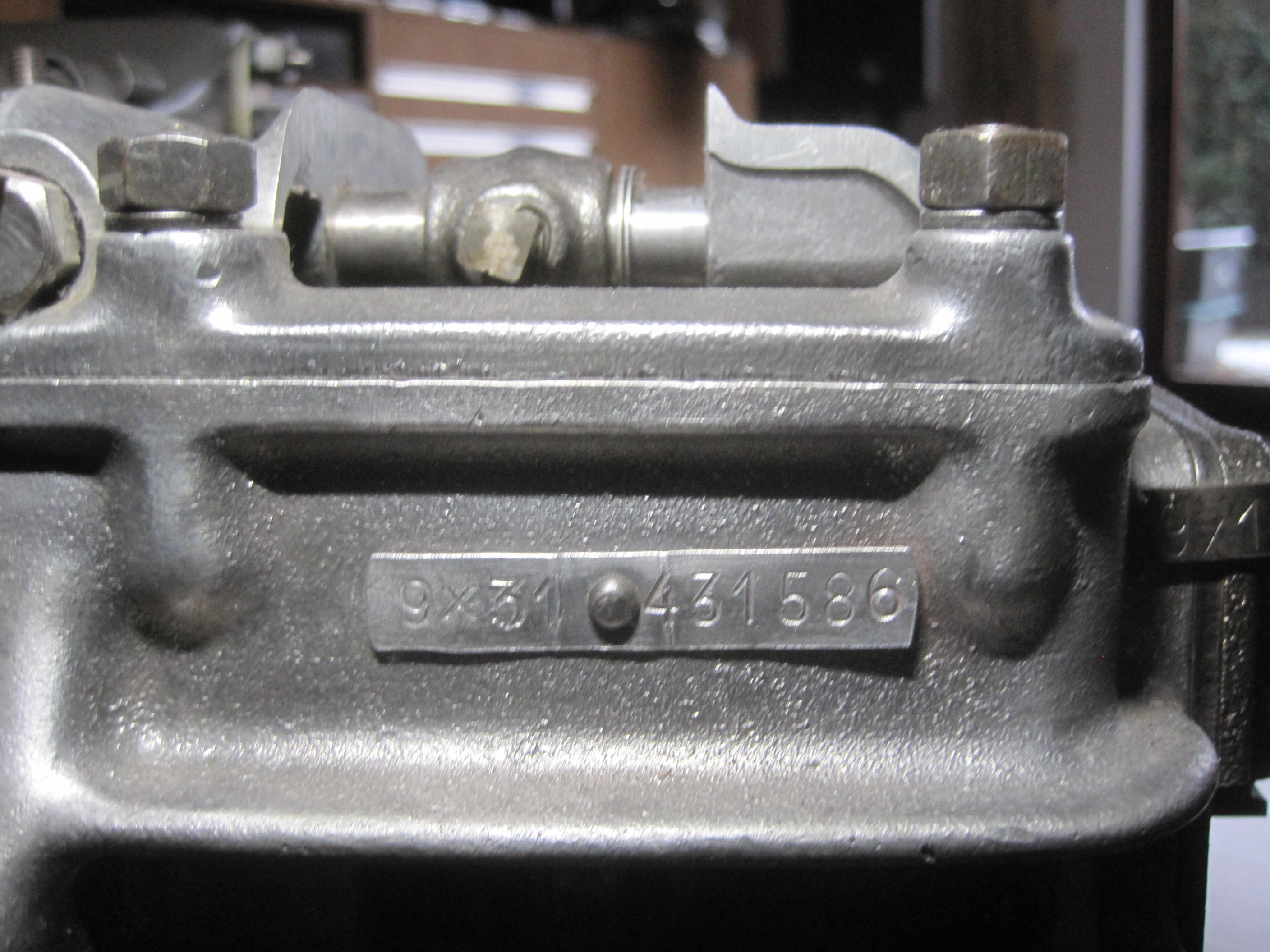 Das Guss-Datum findet sich auf der linken (Fahrer-) Seite, meist auf dem Kopf stehend. Die einzelne Ziffer bezeichnet die Guss-Form, 2 = 1934/1935, C (=3) bis ca. 1946, D (=4) von 1947 - 1948, 5 von 1949 - 09/1951 (wobei es auch Gehäuse von 1952 -1953 mit der 5 gibt), F oder 6 (fand beides Verwendung) von 10/1951 - Mitte 1954, 8 ab Mitte 1954 - Produktionsende. Ein Gehäuse mit einer 7 habe ich bisher noch nicht gesehen.