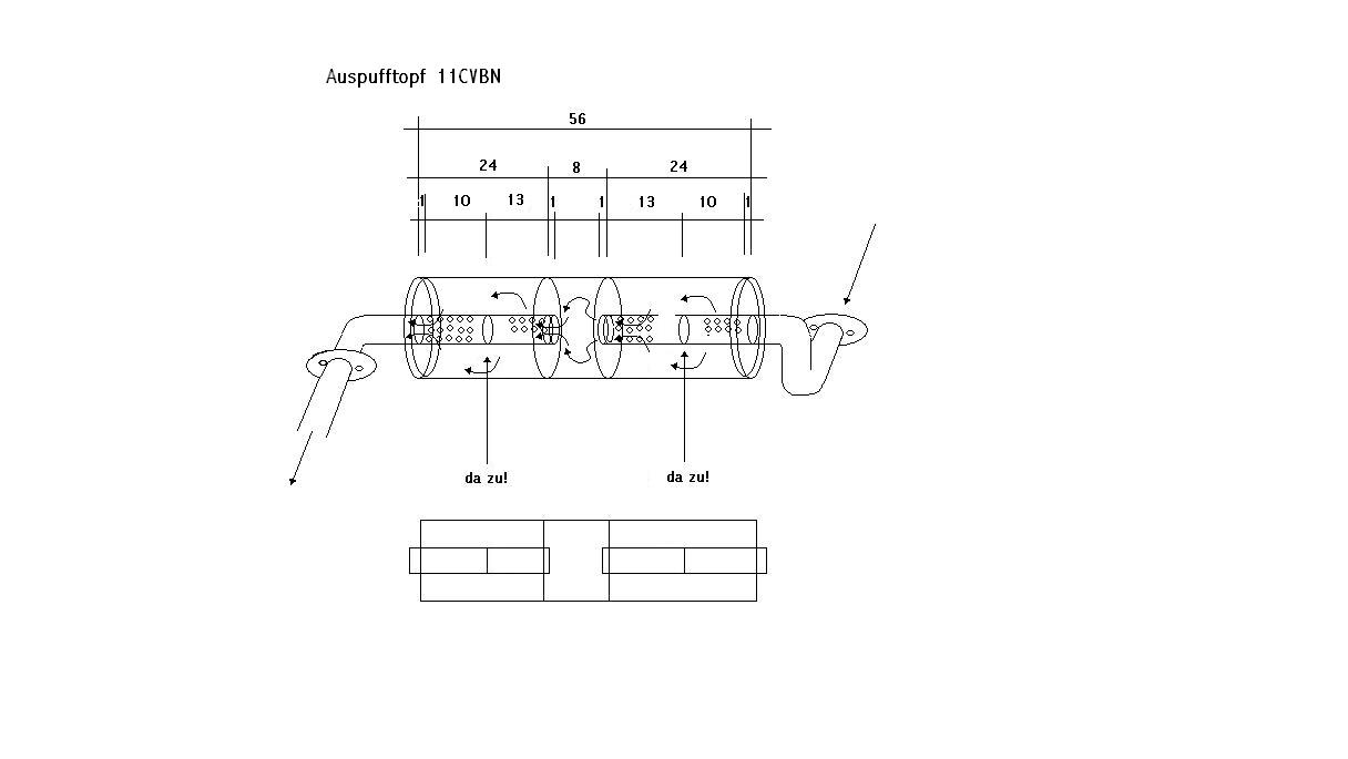 ich hab mir einen Edelstahl-Auspuff geleistet. Der scheint mir aber ziemlich laut im Vergleich mit meinem alten originalen. Der hatte auch dieses relativ leise, "helle Blubbern", ist nun aber leider verrostet. Aber ich hab ihn mal aufgeflext und fotografiert und eine Zeichnung gemacht, falls es jemanden interessiert...