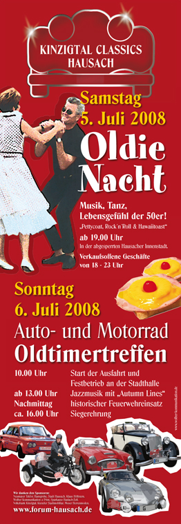 unter diesem Motto steht die Oldie-Nacht am Samstagabend (5.7.) der Kinzigtal Classics Hausach. Lebensgefühl der 50er (50+) mit vielen musikalischen und kulinarischen Angeboten.