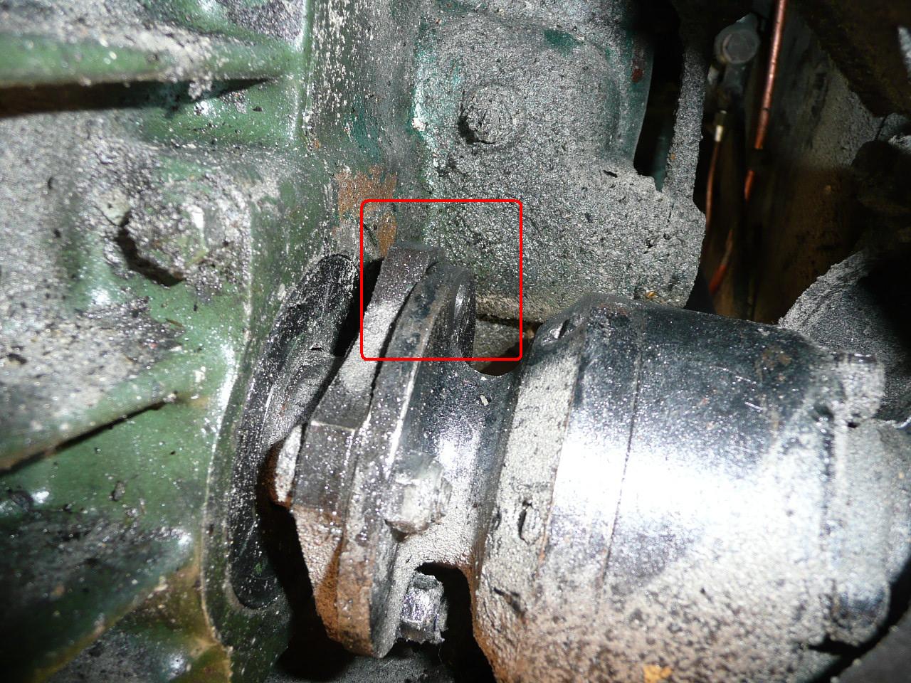 Nun mein Problem: Wie bekomme ich eine Schraube in die beiden Flansche? Eine von der Länge her richtige Schraube passt nicht zwischen Getriebeblock und getriebeseitigem Flansch, da zuwenig Platz ist. (Umgekehrt Mutter auf Getriebeseite funktioniert ebenfalls nicht.)
