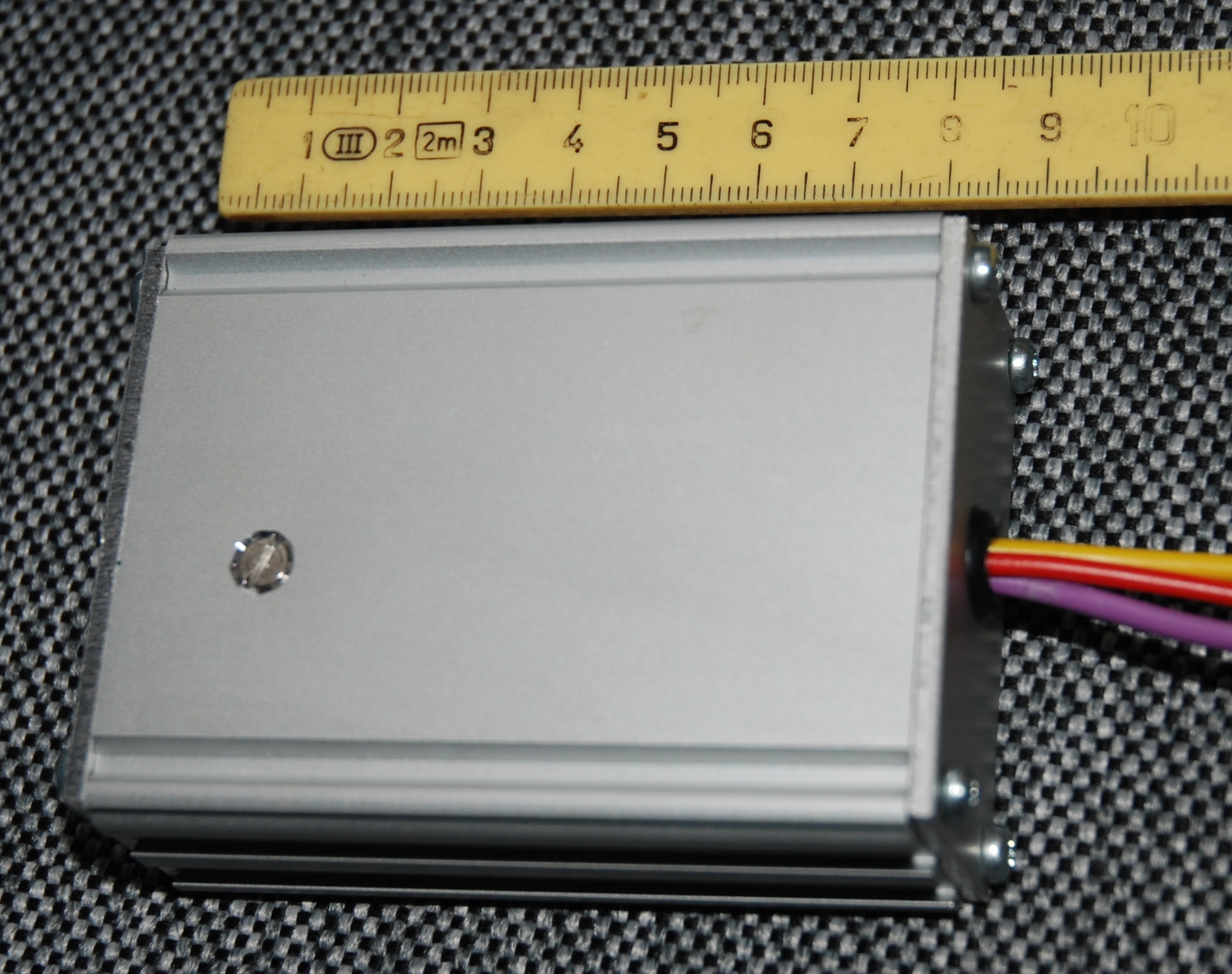 ein Widerstand, ein Poti, eine kleine Platine, ein Alu-