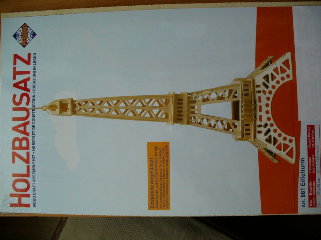 ich habe mehrere Bausätze Eiffelturm aus Holz ca. 55 cm hoch abzugeben.