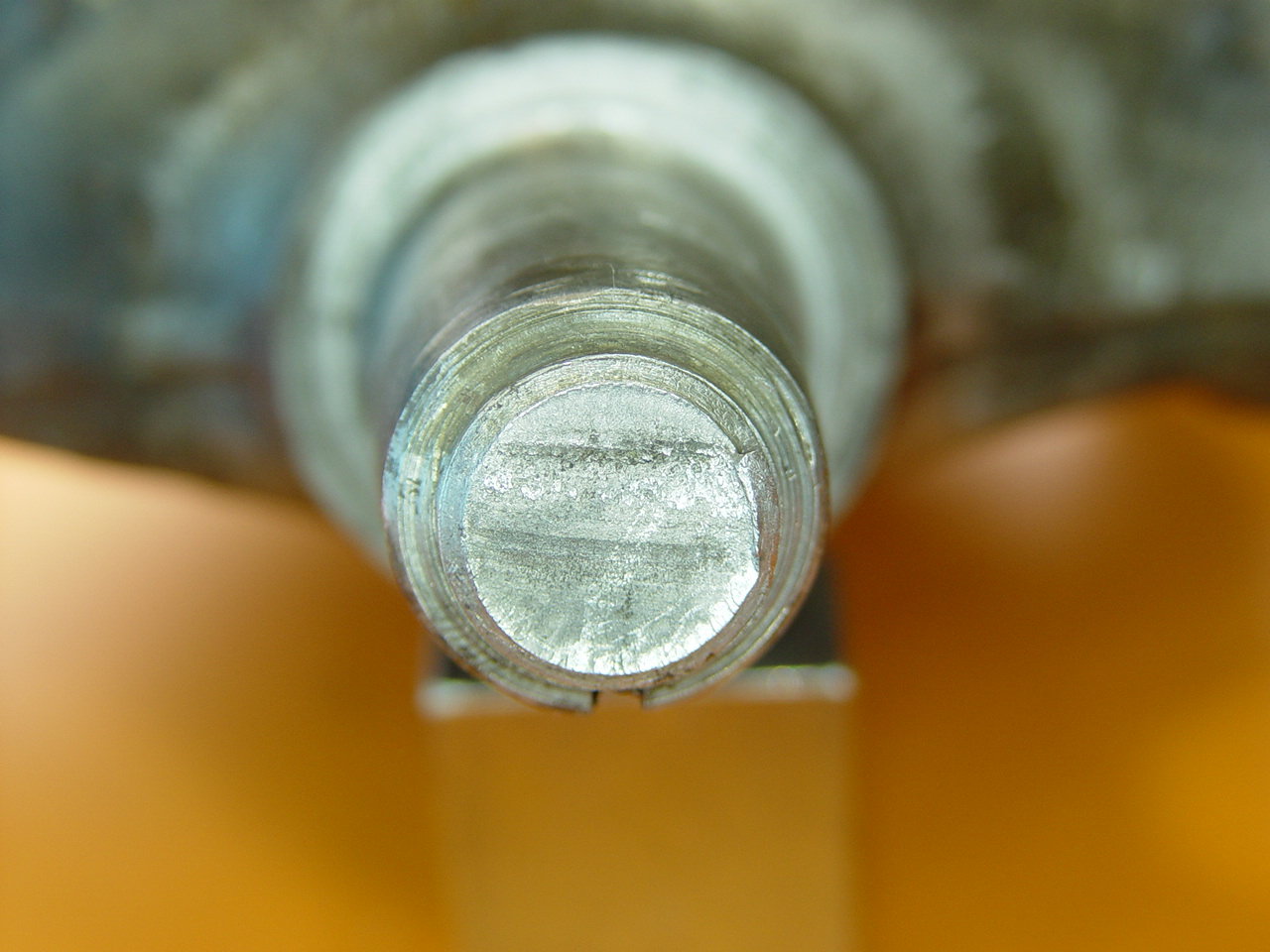 Der Beginn und komplette Abbruch des Konus am Gewindehals erfolgte innerhalb eines Sekundenbereichs, wie die nichtvorhandenen Scheuerspuren auf den beiden Bruchflächen zeigen.