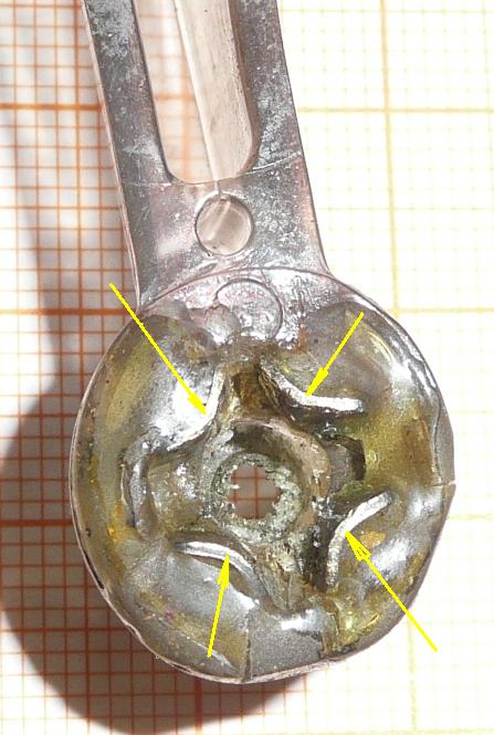 An meiner Minuterie ist nun zum sechtstenmal der mindestens siebenmal geflickte transparente Knebel abgebrochen. Das Plastikmaterial ist sehr spröde geworden und bricht immer wieder an anderer Stelle durch.