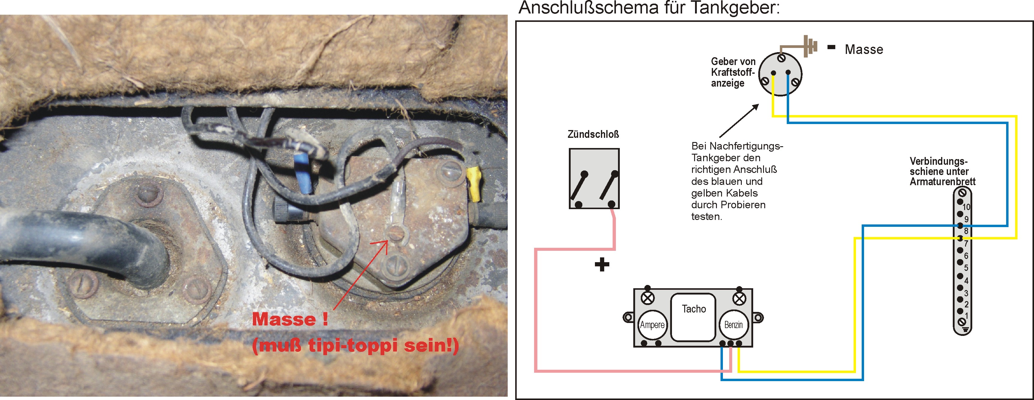 bin seit kurzem auch stolzer besitzer eines 11bl. Ich habe probleme beim elektrischem anschluß des gebers. dort kommen 3 kabel (blau, gelb,schwarz) an. Die Uhr zeigt immer nur bis zur mitte egal wie ich es anschließe. wenn ich strom direkt auf die uhr gebe geht der zeiger auf voll oder leer.