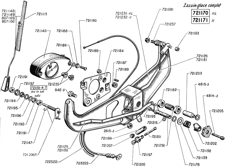 vielleicht hilft Dir die angehängte Explosionszeichnung. Wichtig ist zu wissen, dass der Arm, welcher direkt vom Motor bewegt wird, den zweiten Wischer vor sich her schiebt und dass mit dem Handrad keine 360-Grad-Drehung gemacht werden kann.