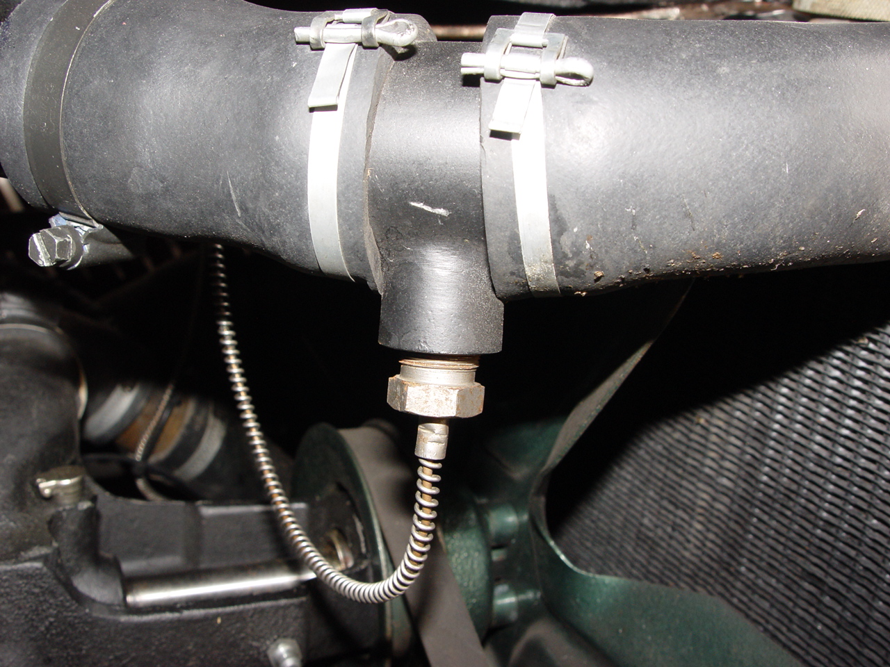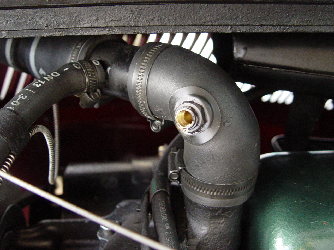 Einen Temperaturfühler kannst Du in mehreren Varianten montieren. Es gibt in den Schlauch einvulkanisierte Hülsen, die den Fühler aufnehmen. Damit habe ich nicht so gute Erfahrungen gemacht, denn bei mir war die Gewindehülse nicht vulkanisiert, sondern geklebt. der Kleber löste sich allmählich auf, der Hülsenanschluß wurde undicht und das Kühlwasser hatte obenauf immer schmutzige Schaumblasen vom Kleber.