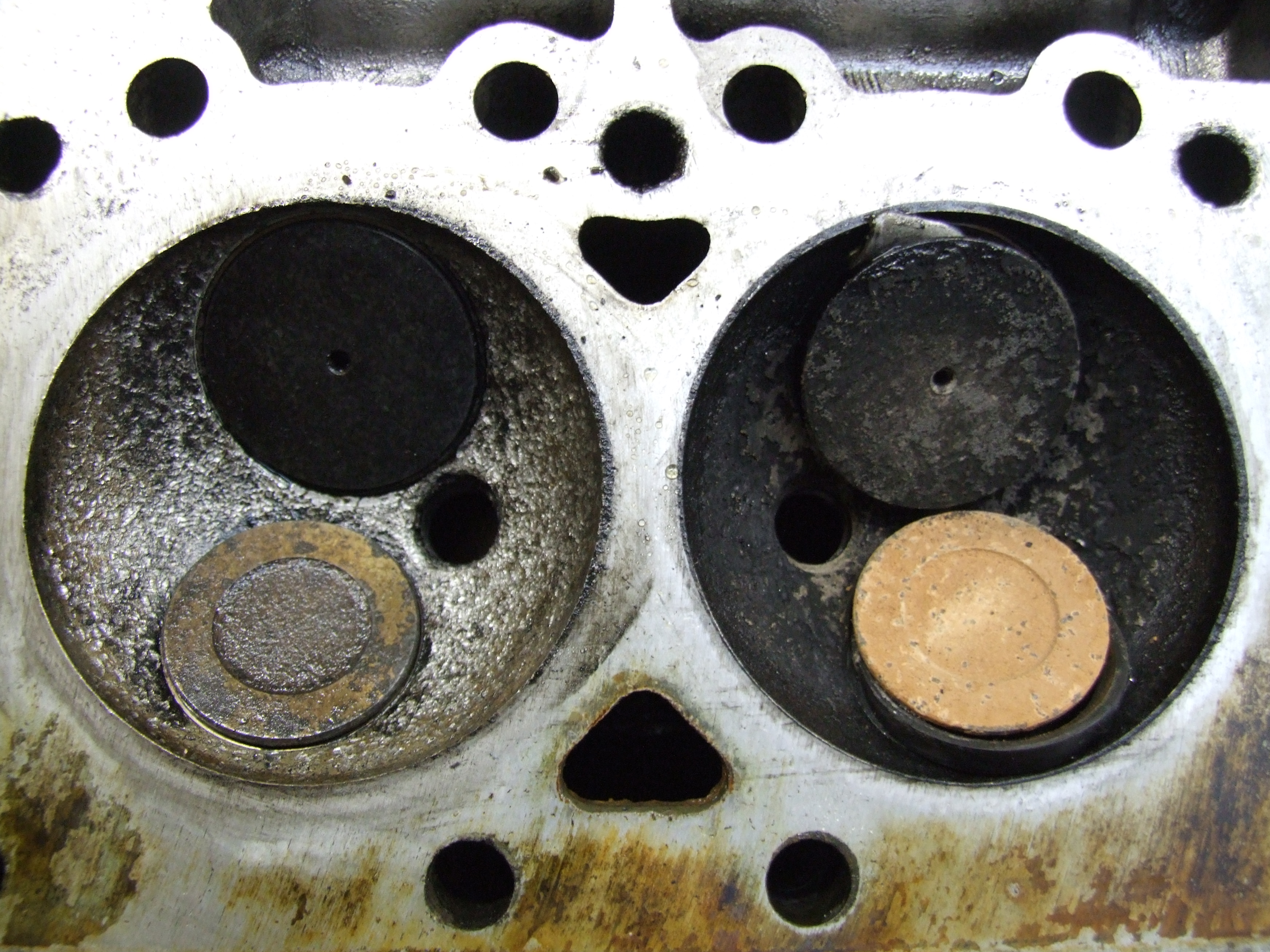 ... und hier in den Brennraum gerutschte und durch den Ventilteller gespaltene Ventilführungen bei meinem HY.