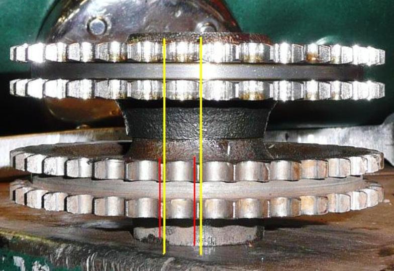 Der Zahnversatz sieht auf dem Foto nur sehr gering aus (Weitwinkel), dennoch hinkten die Steuerwinkel den Kolben 7 mm nach OT hinterher.