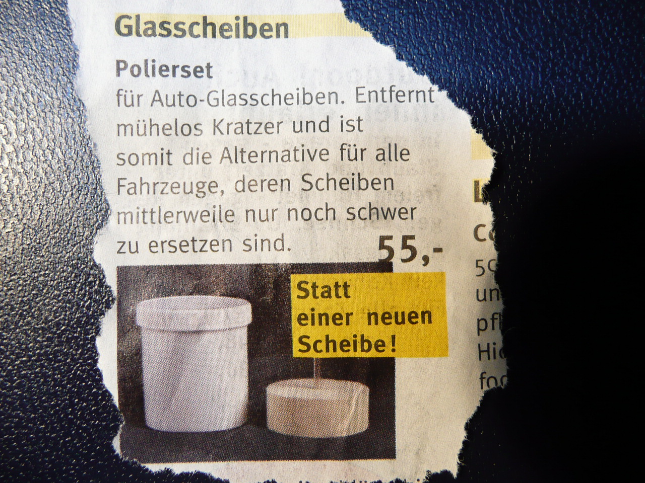 Problem ist - erst Recht in Anbetracht des Preises für das Polierzeugs - nicht der Preis einer neuen Scheibe, sondern das problematisch-dichte Einpassen in den Rahmen.