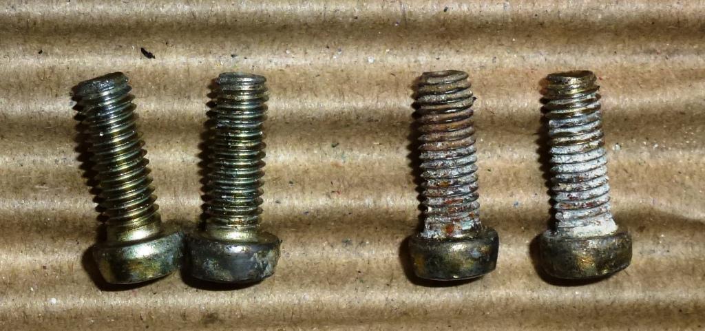 Anbei eine Abbildung von Schrauben, die durch Alkoholgehalt korrodiert sind. Es sind die Verschraubungen des Gehäuses der Benzinpumpe. Das graue sind Zinkalkoholate.