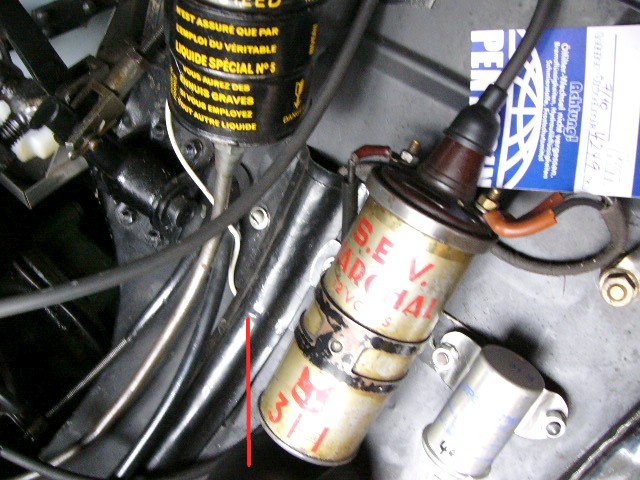 Hallo Werner, so eine Abdeckung sitzt bei mir neben der Zündspule. Allerdings ist sie insgesamt wesentlich länger und führt bis neben das Getriebe. Das obere Stück bis zum erkennbaren Absatz bzw. Knick (rote Markierung) ist genau 10 cm lang und könnte damit Deinem Exemplar entsprechen. Bedenke: Mein 11er ist von 1948, man hat vielleicht bei späteren Modellen Material gespart. Gruß, Harald