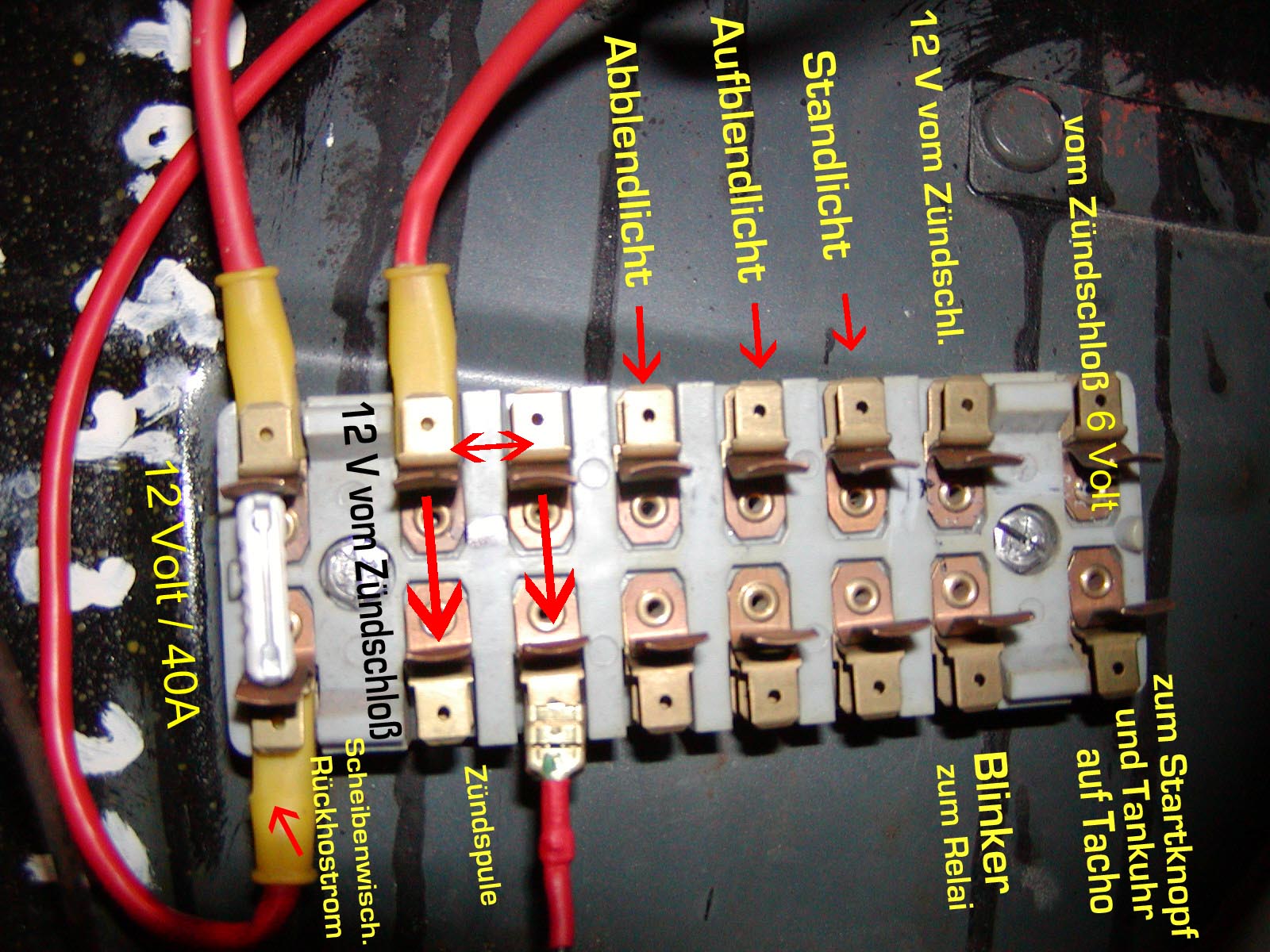 N'Abend Harald, die dicken Querschnitte habe ich wegen der geringeren Spannungsverluste gewählt, nicht wegen der möglichen Belastbarkeit. 0,5 Volt weniger Spannung macht sich bei der Beleuchtung sichtbar bemerkbar. Original waren auch 6² und 4² Querschnitte montiert.