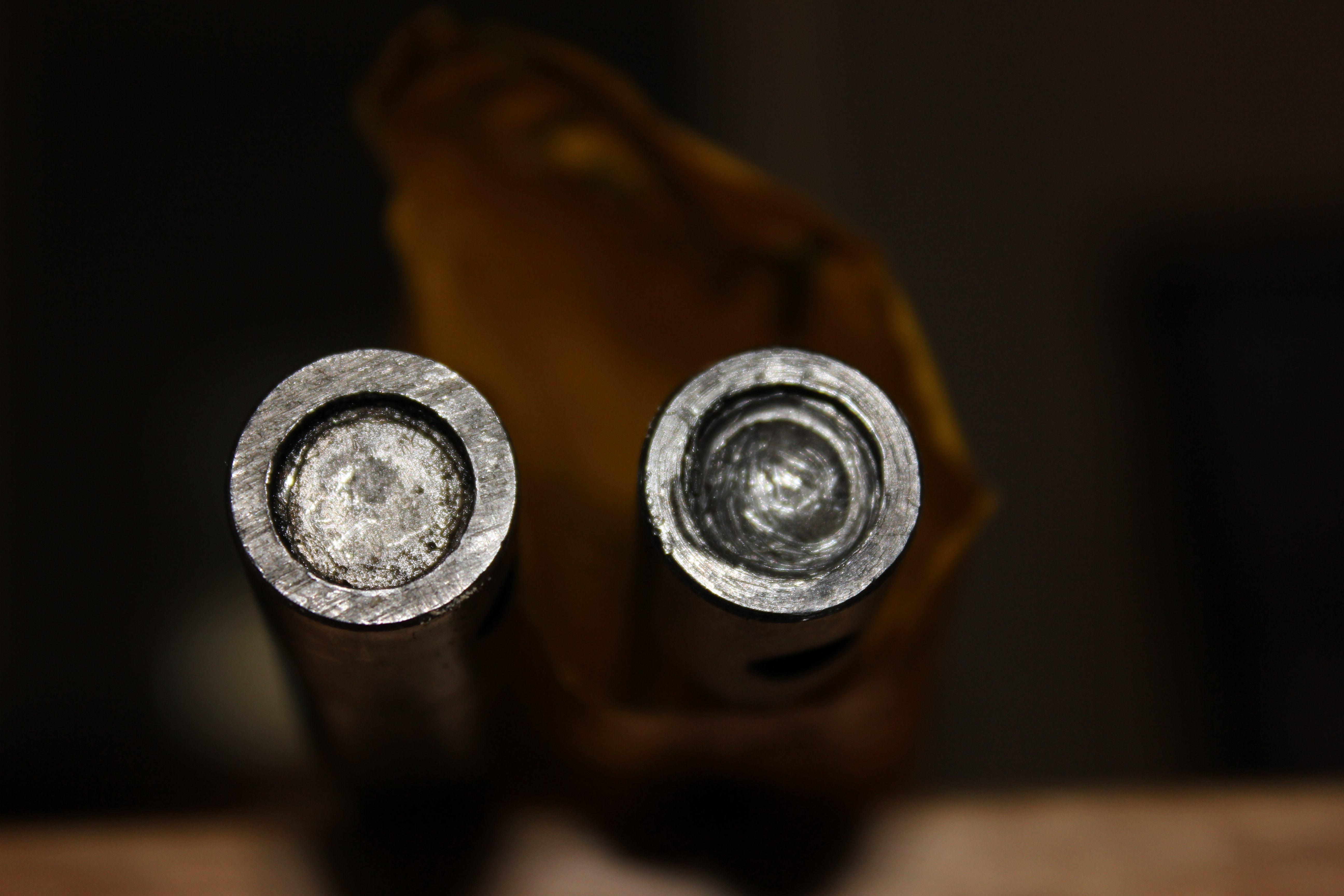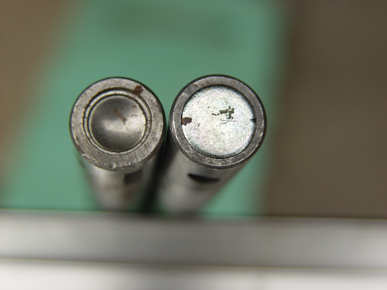Diesen Thread zum Anlass genommen, die alten Ventile, die ich seit 20 Jahren vergammeln lasse, genauer anzuschauen. Sieht aus, als hätt ich Auslassventile. Sie sind  0,01-0,02mm am Schaft verschlissen und haben dort leider etwas Korrosion abgekriegt. Hoffe, dass der Instandsetzer den Schaft etwas abnehmen kann.