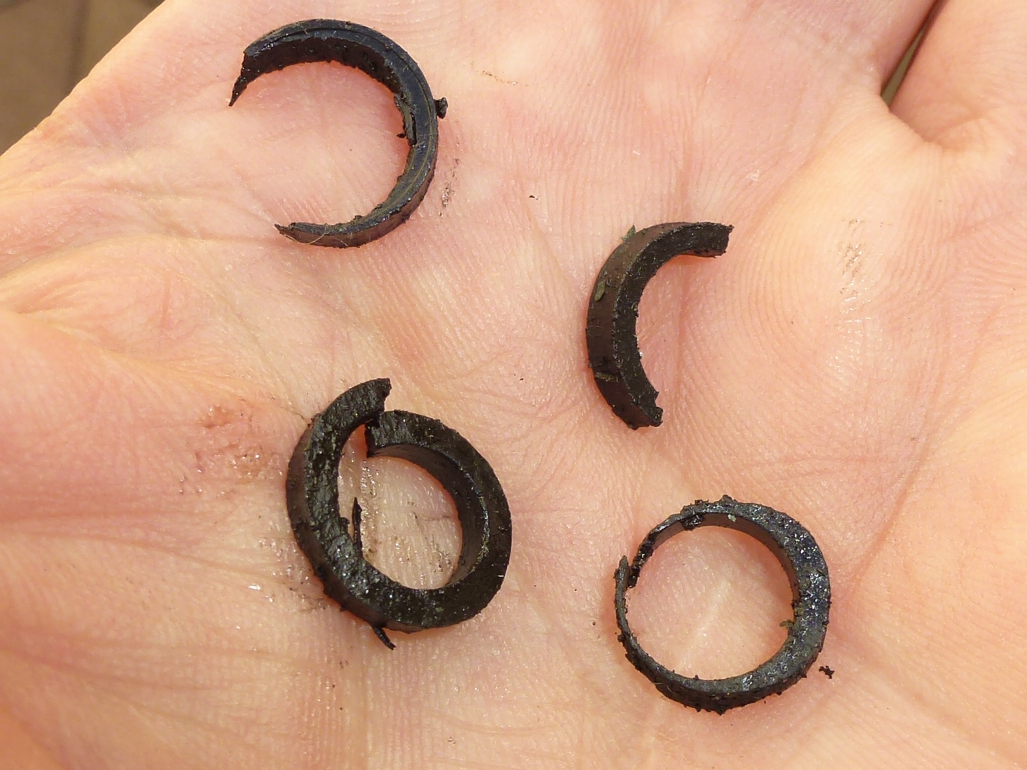 ... völlig zerbröselte O-Ringe, die als Ventilschaftabstreifer funktionieren sollten ...