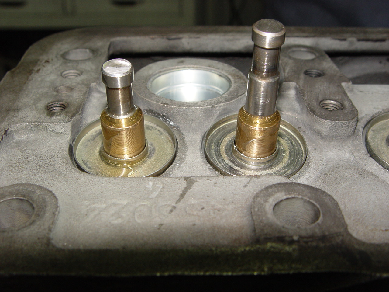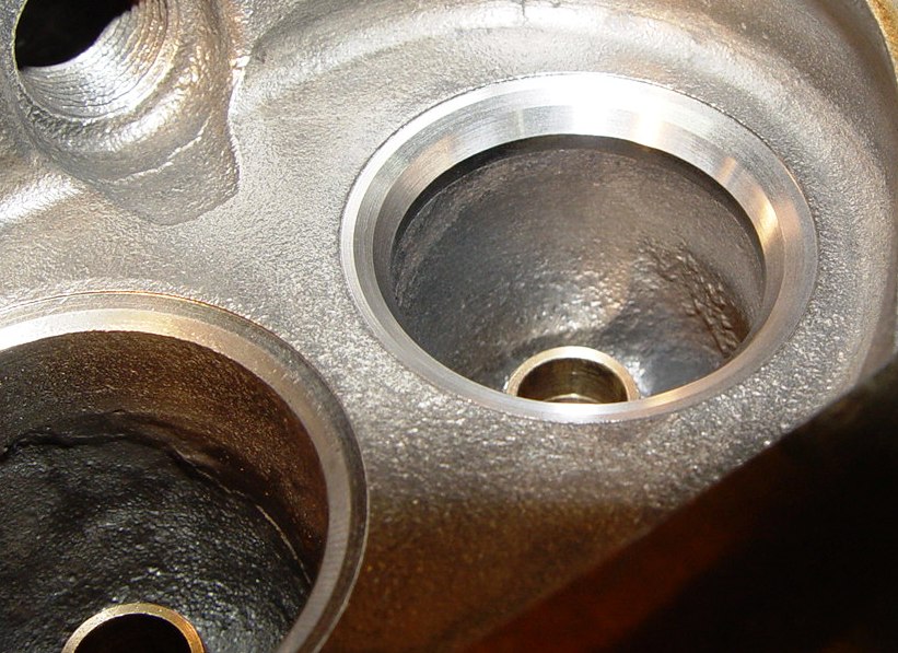 Der Ventilsitz ist mit 60 ° gefräst worden, ansonsten hätten die Ventile nicht richtig gesessen. Der 3. Winkel ging nach innen, 15 ° um den Kanalübergang zu harmonisieren. Richtig, nur die Auslassventile klopfen auf gehärtete Sitze. Inwieweit sie erforderlich sind, weiß ich nicht. Ich weiß aber sicher, dass der sogenannte "Bleiersatz" bei weitem nicht die Vorteile zu erbringen vermag, wie es Bleibenzin kann. (Deswegen tanke ich gelegentlich Bleibenzin.) Mir ging es nicht um irgendein zusätzliche PS-lein, sondern um solide Lebensdauer. 0,25 mm rundum Luft sind natürlich knapp. Probleme können mit dem Verschleiß der Ventilführung einhergehen, denke ich. Ja, natürlich arbeiten die Ventilfedern gegen die exakt zylindrische Form, der "Knick" wird von der Stelle ausgelöst, an der der Federstoß aufliegt. Im Zweifelsfalle weglassen!