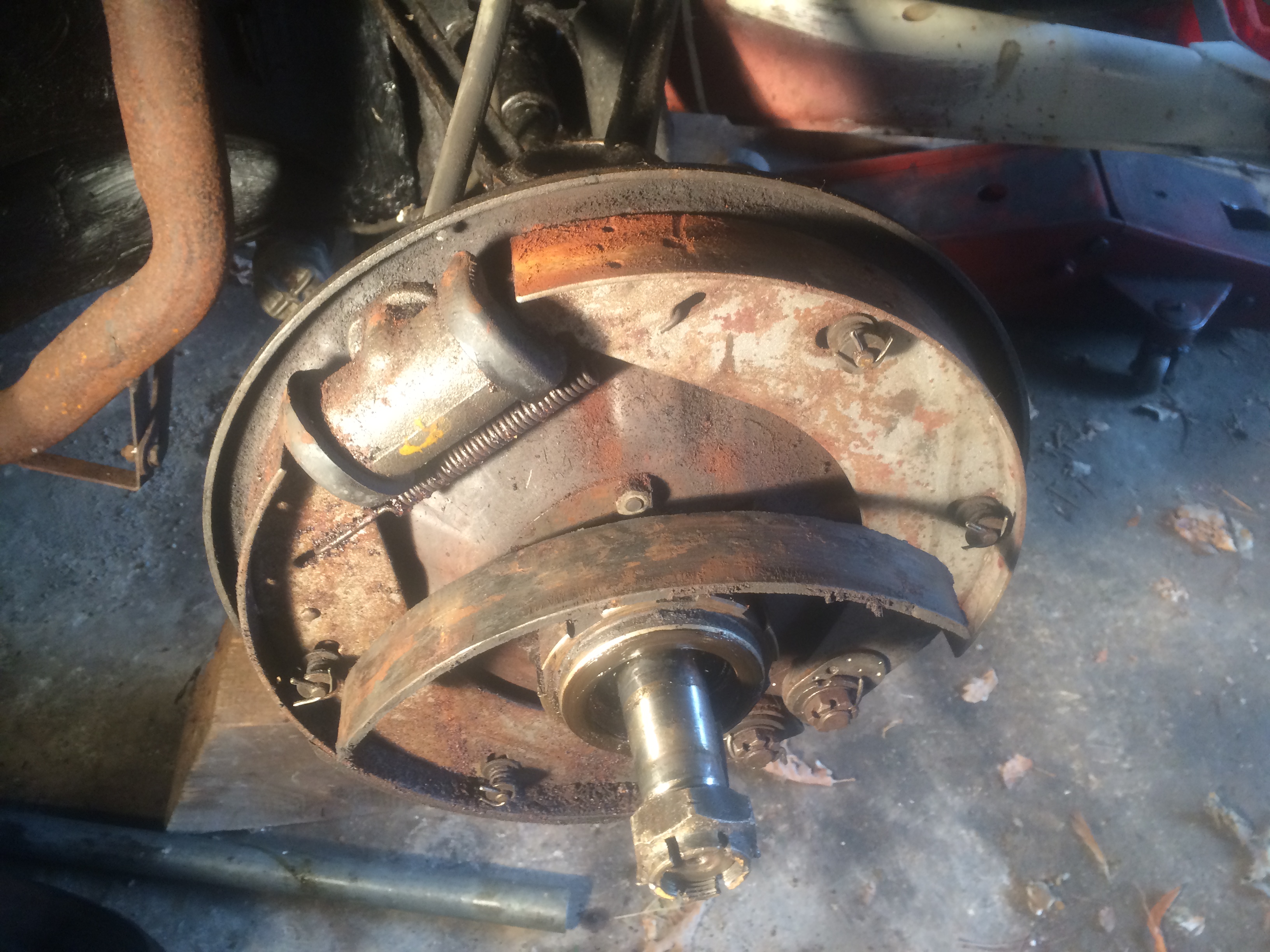 Um mal weiterzumachen: habe heute die vordere rechte Bremse runtergenommen. Erkenntnisse: - die Trommel hat ein Stück ausgebrochen aus dem hinteren Rand. Wenn jemand eine alte Bruchtrommel hat, hätte ich Interesse an ca. 10 cm Rand (12"). Das würde ich wieder einschweißen wollen, um das Gewicht / Unwucht zu verringern. Ne andere Trommel ist mir zu teuer, und wegen eines Stückes was am Rand fehlt auch m. E. nach nicht notwendig. - von einer Backe ist der Belag ab. Ich weiß nicht, wie macht man das am 11er- man kauft heutzutage nur die Beläge, und muss die dann selber aufnieten oder aufkleben (lassen) ? Ich würde das dann (achsweise) auf allen beiden Vorderrädern machen wollen. Gibts da ne Anleitung im Netz ? - die Achswelle war die richtige, also rechts vorn ging rechtsdrehend auf, aber es war gefettet. Mit dem großen Abzieher machte es nur plopp, und dann war die Trommel runter. Mit der normalen 1/2-Ratsche. Ohne 46er zum Gegenhalten, ohne irgendwas. Gedreht, plopp, ab. Nun muss ich noch gucken, was der Zylinder so hat, wie immer sieht es von außen gruselig rostig aus. Das war hinten aber auch so, und im Zylinder war nach dem Hohnen alles wieder gut. Ich lad gleich noch Bilder nach.