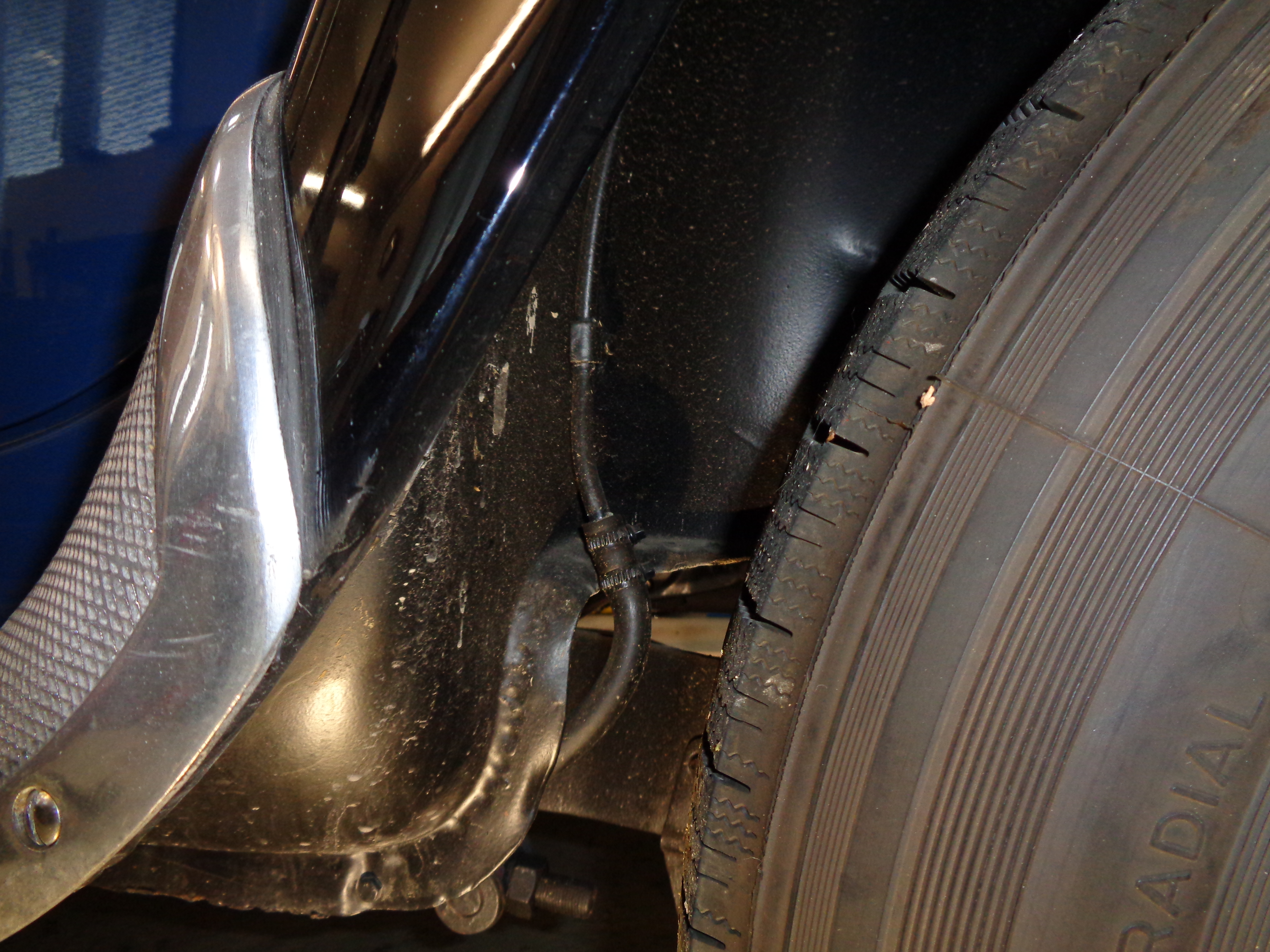 Anbei eine Zusammenstellung für BN 1949. Dort siehst Du in erster Linie Spuren meiner Quick-and-Dirty-Restauration mit 20 Jahren. Ich habe mich da an wenigen Spuren der Halterungen orientiert, wobei ich mich an den wenigen Spuren orientriert habe, die nach dem Sandstrahlen durch meinen Vorgänger übrig geblieben sind. Möglich, dass am Unterboden die Leitung durch die Streben verläuft und nicht außen. Im Radkasten ist die Original-Leitung. Ich hoffe es hilft Dir.