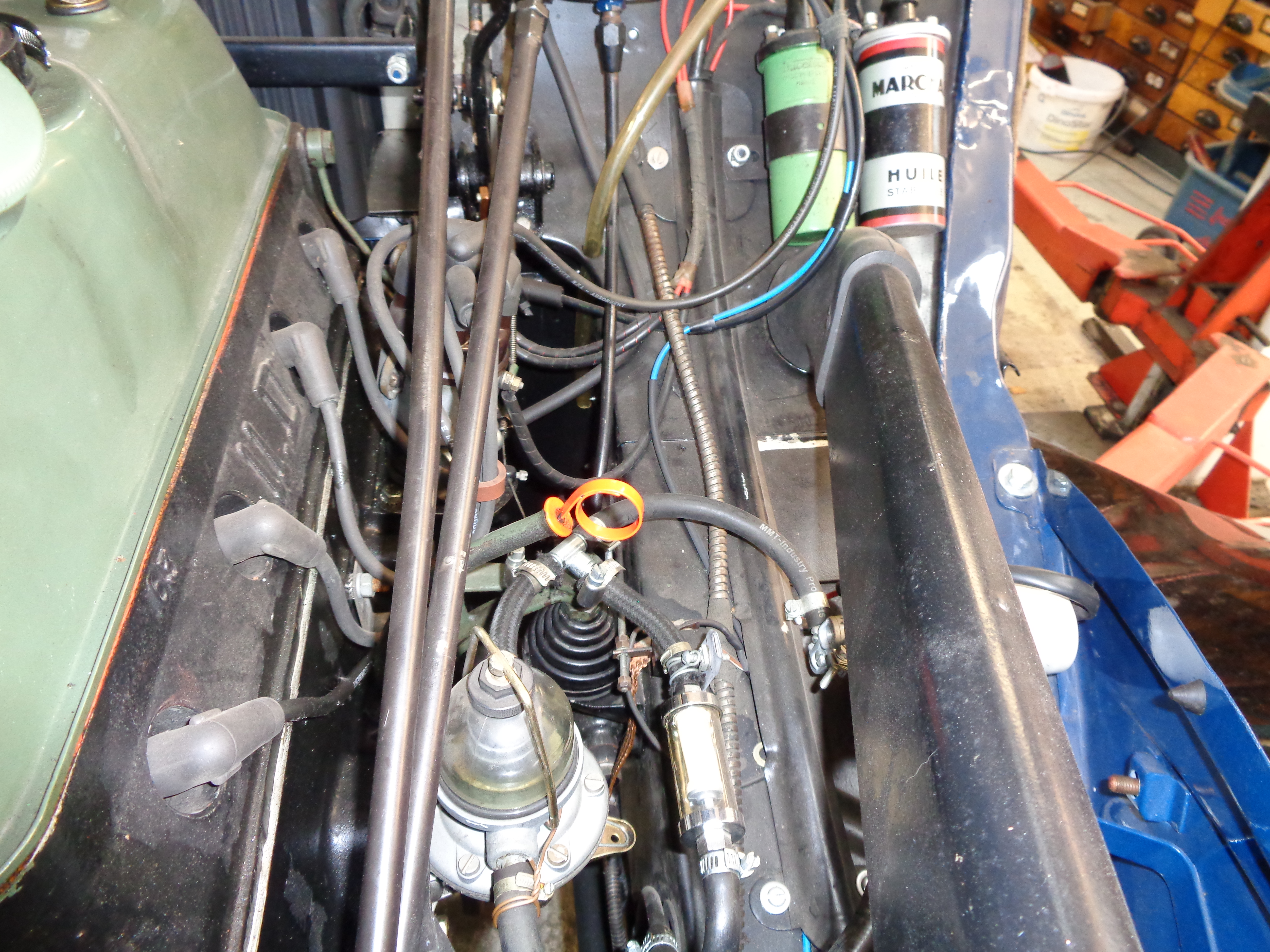 Das mit dem kurzen Stück Schlauch stimmt. Ich habe meinen 11CV Koffermodell vor ca. 40 Jahren in Bordeaux gekauft in komplett originalem Zustand. Da war auch dieses kurze Stück Schlauch verbaut. Benzinleitungen waren aus Kupfer (glaube ich jedenfalls, heute sind das Kupferleitungen)