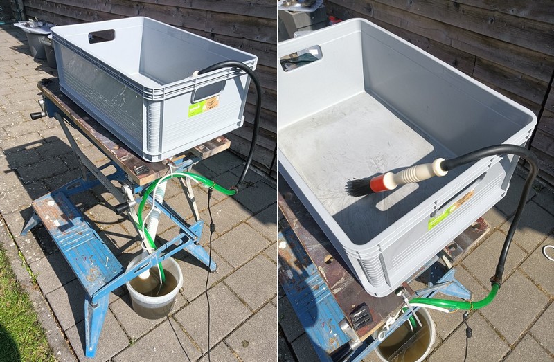 Um die Reinigung so effizient wie möglich durchzuführen hab ich mir eine einfache "Waschanlage" aufgebaut.