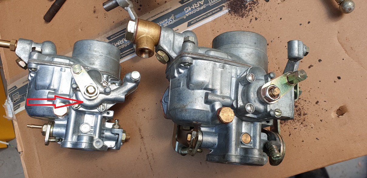 Beim Jeepvergaser geht der Chockezug nach oben weg aber ich möchte ihn, wie beim 11CV horizontal führen.
